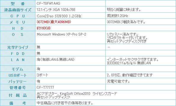 メモリーは3GBまで増設済みです。
