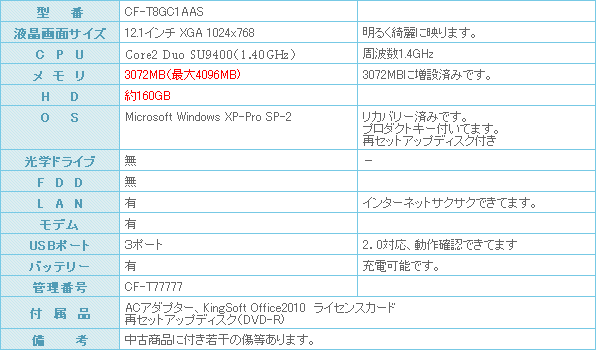 CPUはCore2 Duo SU9400(1.40GHz)搭載!