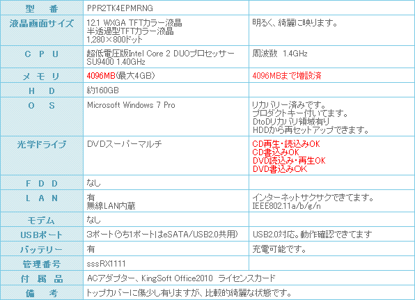 CPUはCore2Duo プロセッサー 超低電圧 SU9400 動作周波数 1.4GHz搭載とモバイルPCには持った無い位の威力を発揮します。