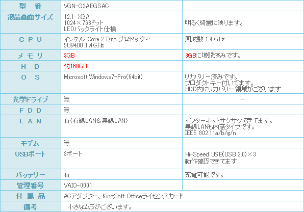 お洒落なVAIOのB5モバイルパソコンが入荷しました。