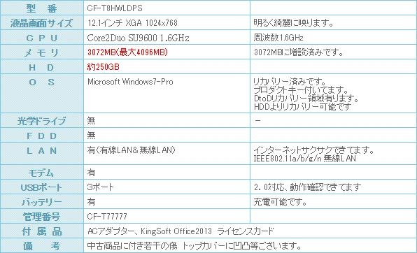 CPUはCore 2 Duo SU9600 (1.6GHz)搭載!
