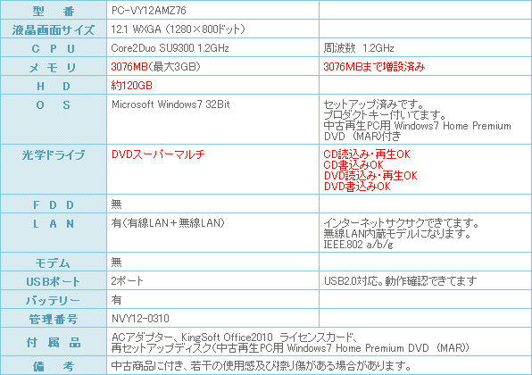 もちろん、再セットアップ時の中古再生PC用 Windows7 Home Premium DVDも付いています。