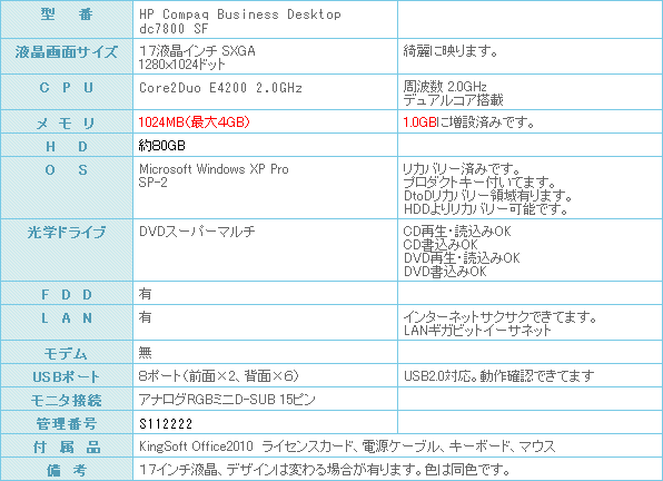 Core2Duo E4200 搭載 17インチ液晶セットモデルがビックリ価格!