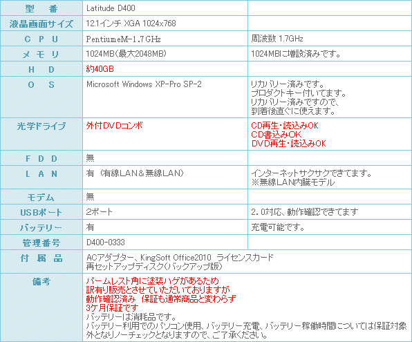 お手軽価格のノートパソコン DELL Latitude D400のご紹介です。