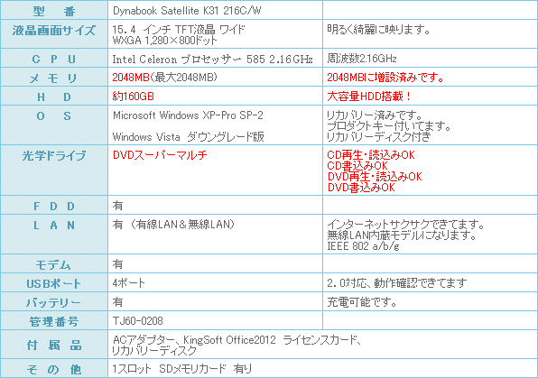 CPUはインテル Celeron プロセッサー 585 2.16GHz搭載になります。