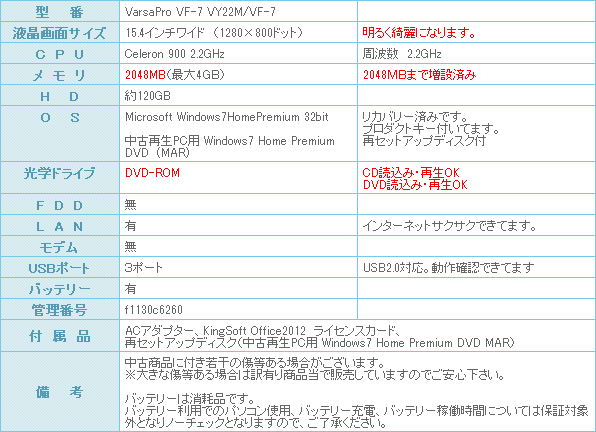 もちろん、再セットアップ時の中古再生PC用 Windows7 Home Premium DVDも付いています。