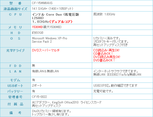 人気のCF-Y5シリーズです。