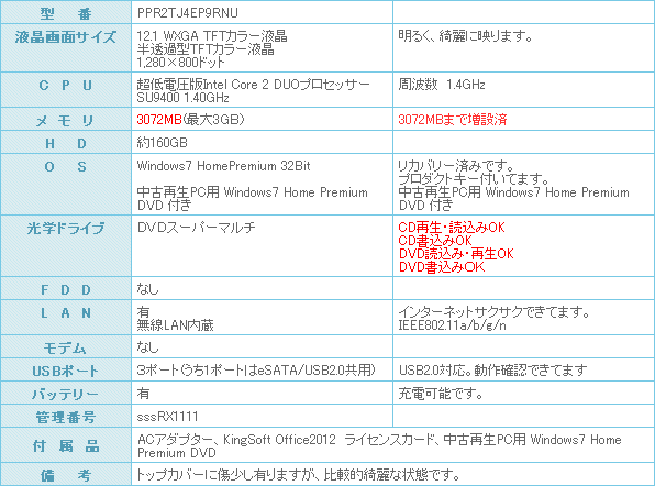 CPUはCore2Duo プロセッサー 超低電圧 SU9400 動作周波数 1.4GHz搭載とモバイルPCには持った無い位の威力を発揮します。